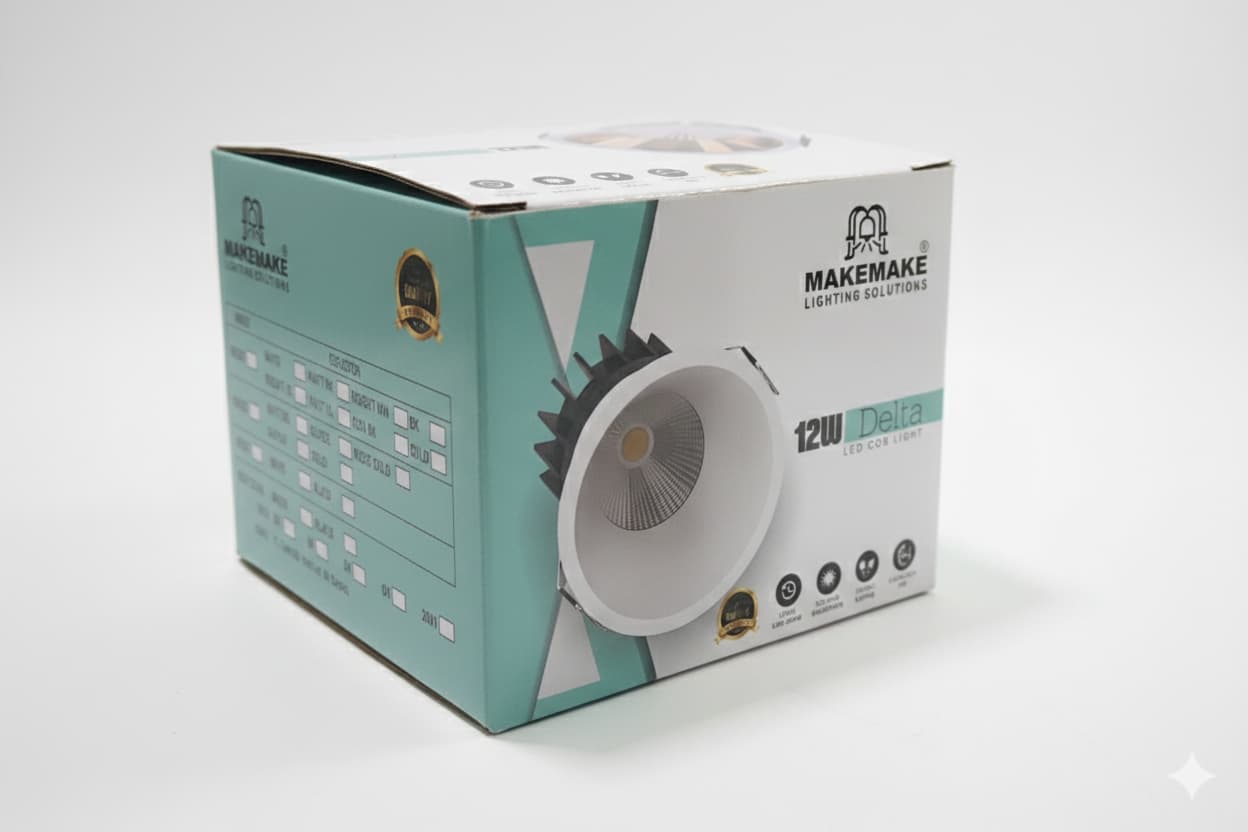 The Delta COB Series, manufactured by Lens Tech India Private Limited under the Makemake Lighting Solutions brand, is a high-performance architectural spotlight. While the “Creta” series is often the flagship for slim designs, the Delta model is recognized for its robust build and “High Lumens” output, making it the preferred choice for areas requiring intense, focused brightness.